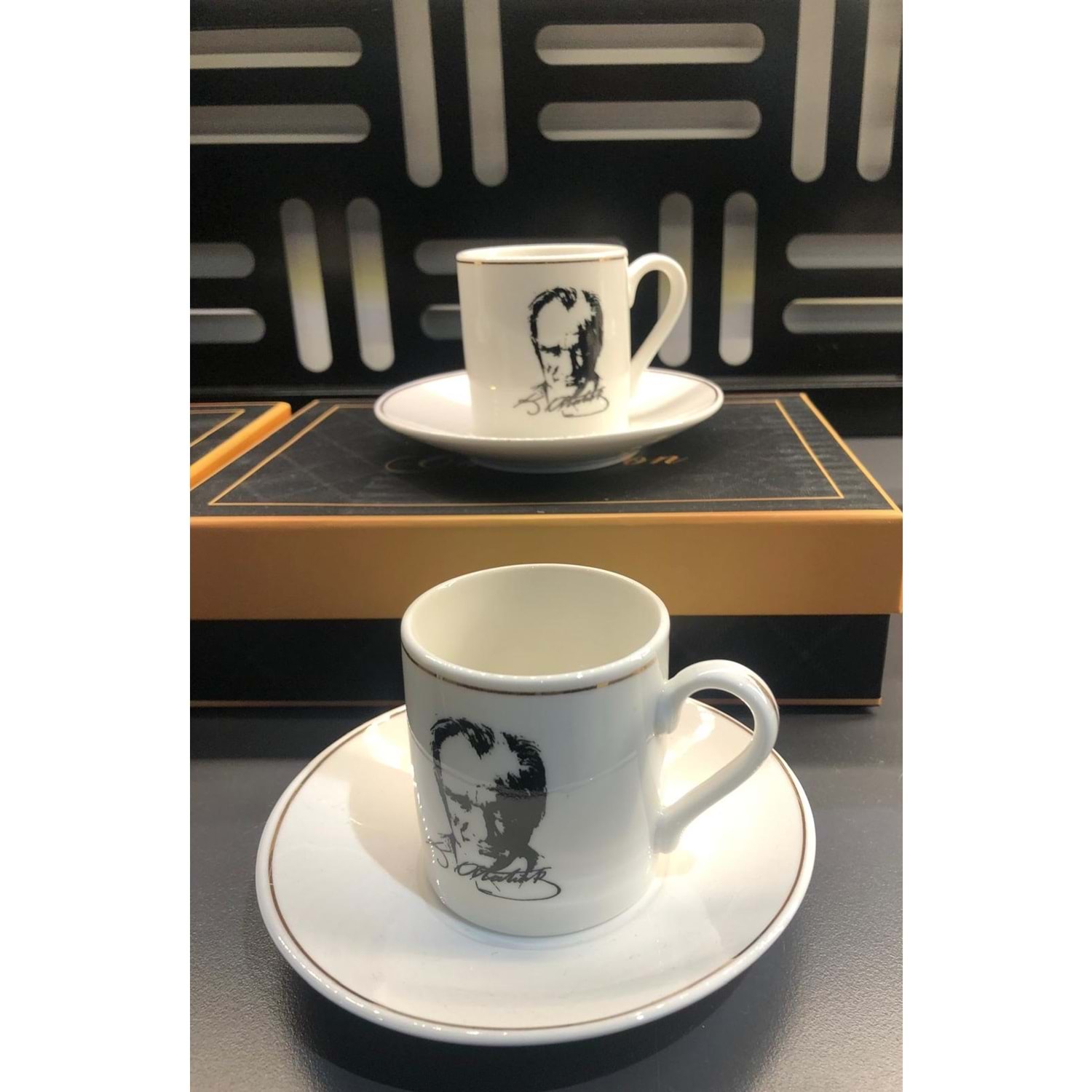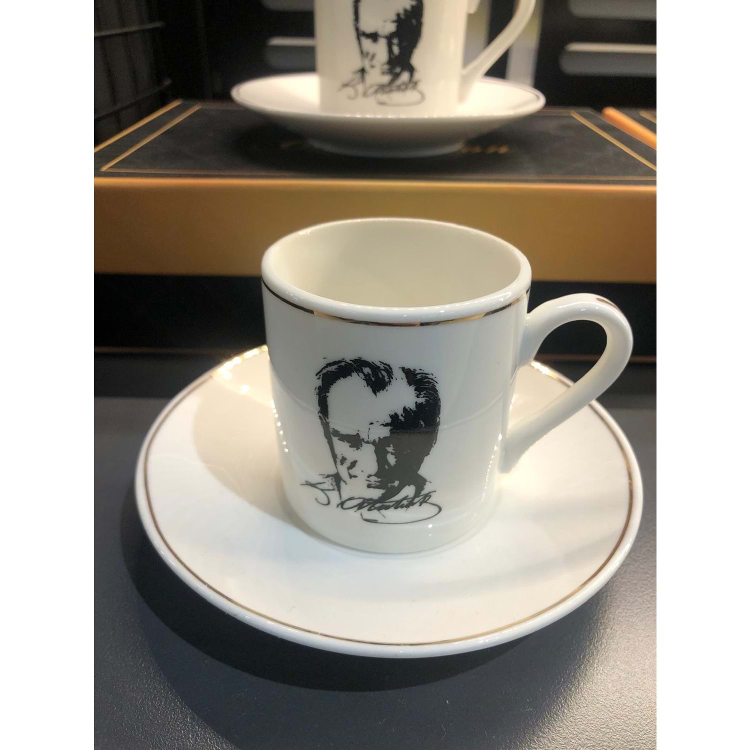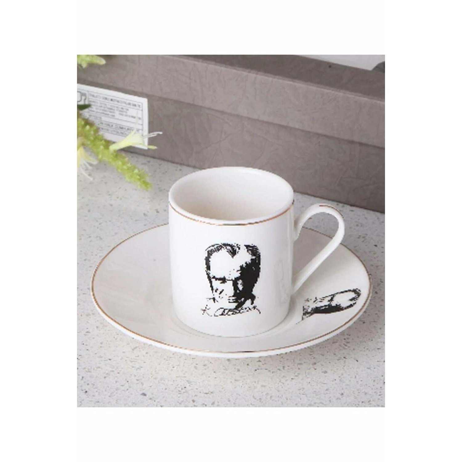 Atatürk Portreli -Porselen 2'li Kahve Fincan Seti