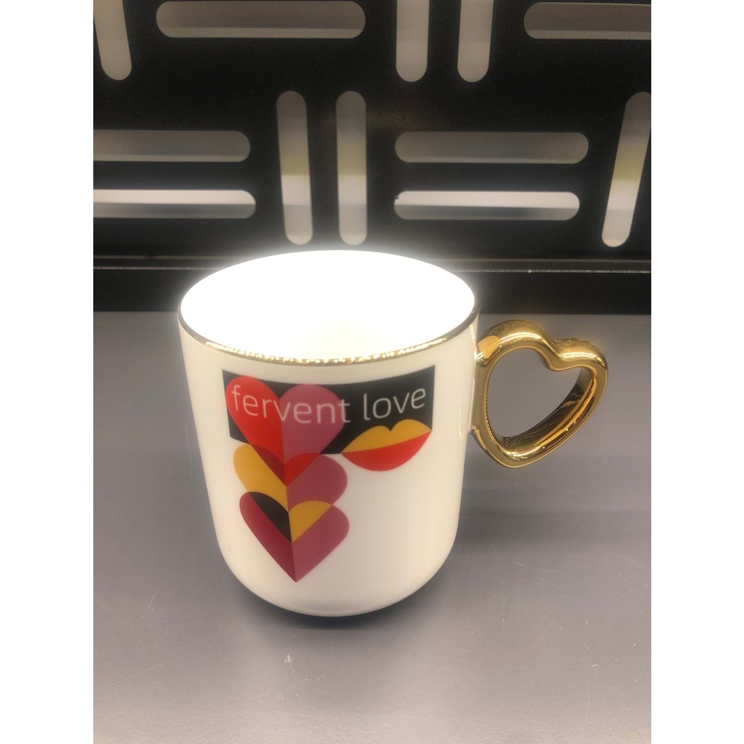Özel Tasarım Porselen Kalp Kupa Yaldızlı -4-380 ml
