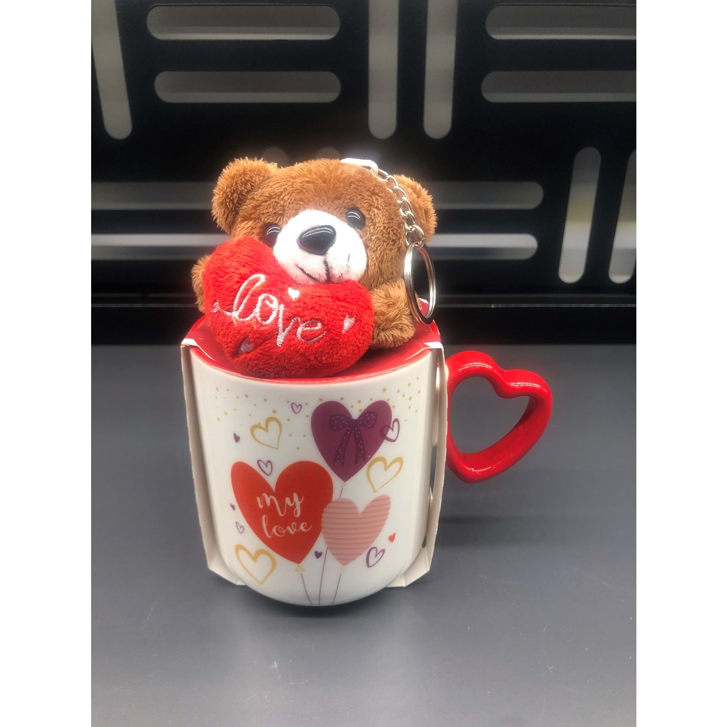 Peluş Ayıcık Anahtarlıklı Porselen Kalp Kupa -2-380 ml