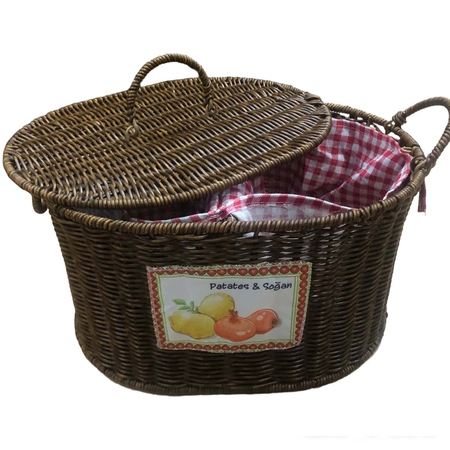 Rattan Hasır Bölmeli Kapaklı Sebzelik - Patates Soğan Sebze Sepeti