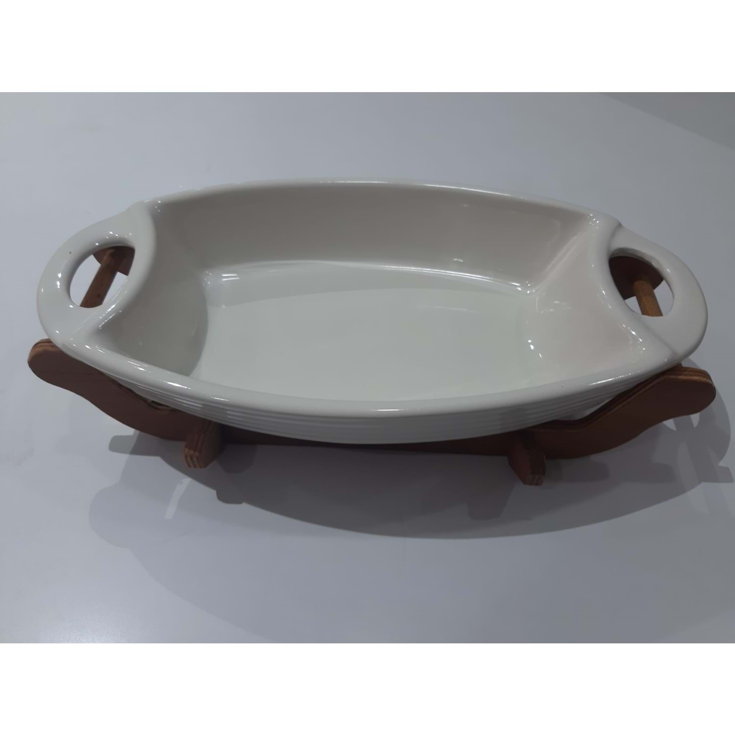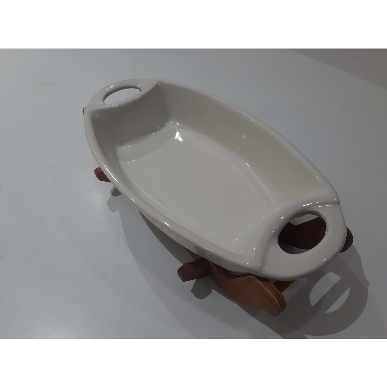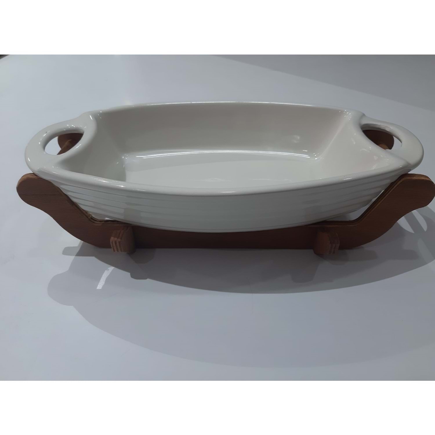 Ahşap Standlı Seramik Kulplu Gondol Fırın ve Sunum Kabı