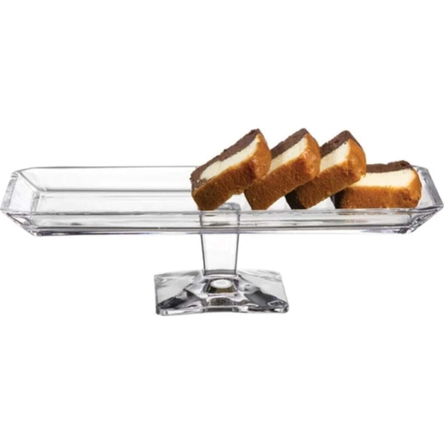 - Modern tasarımıyla dikkat çeken dikdörtgen şekli, her türlü sofraya şık bir dokunuş ekler. - Yüksek kaliteli cam materyali sayesinde dayanıklılık ve estetik görünümü bir arada sunar. - Tek parça olarak sunulan bu ayaklı sunumluk, kolayca kullanılabilir ve pratik bir sunum imkanı sağlar. - Türkiye menşeli olmasıyla yerel üretim desteklenmiş olup, kalite kontrol süreçlerinden geçmiş garantili bir üründür.