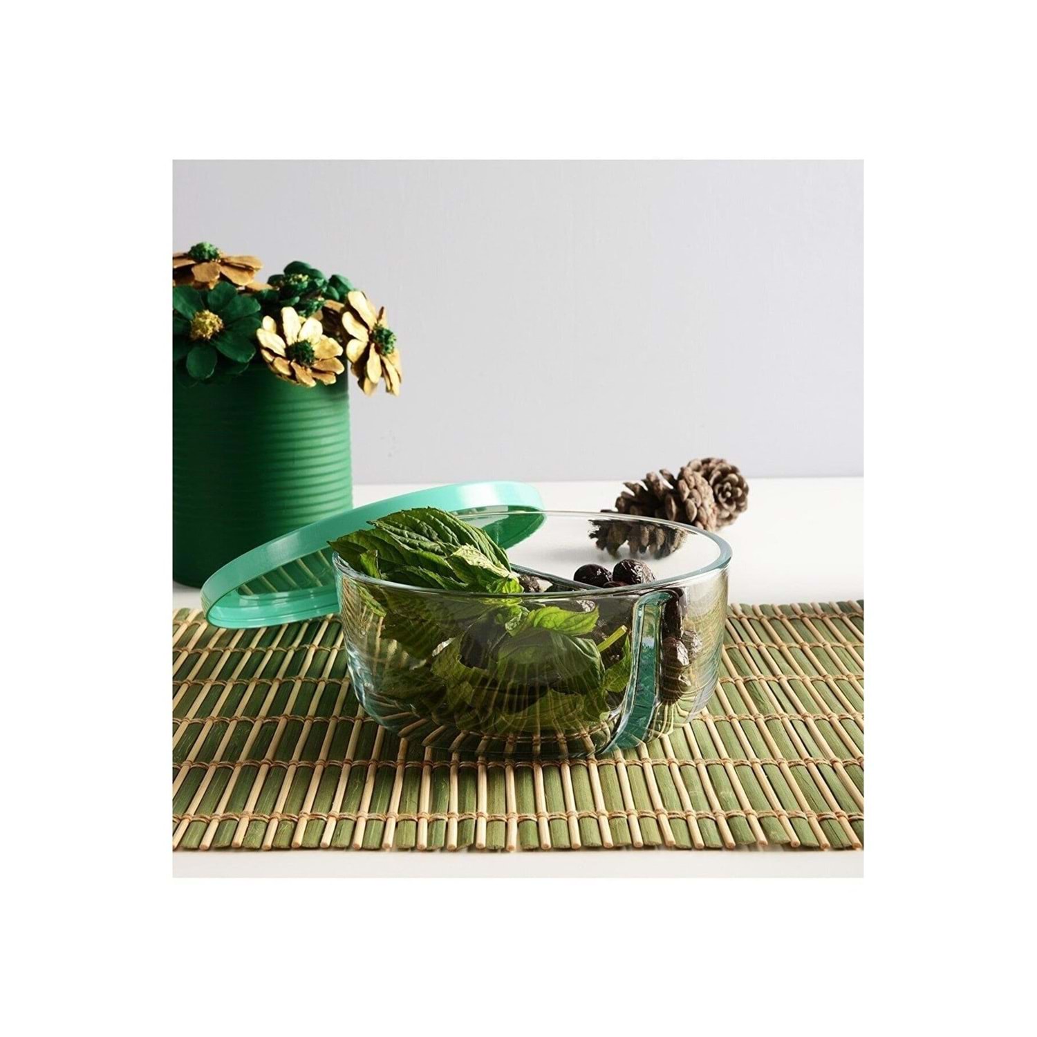 - İki bölmeli tasarımı sayesinde kahvaltılıklarınızı ayrı ayrı saklayabilir, taze ve düzenli bir şekilde muhafaza edebilirsiniz. - Şeffaf cam yapısı ile içerisindeki ürünleri kolayca görebilir, pratik bir kullanım sunar. - Yeşil renkli kapakları ile şık ve modern bir görünüm sağlar, mutfak dekorasyonunuza uyum katar. - Paşabahçe kalitesiyle üretilmiş olup, dayanıklı ve uzun ömürlü bir kullanım vaat eder. - Gıda temasına uygun malzemeden üretilmiştir, güvenle kullanabilirsiniz.