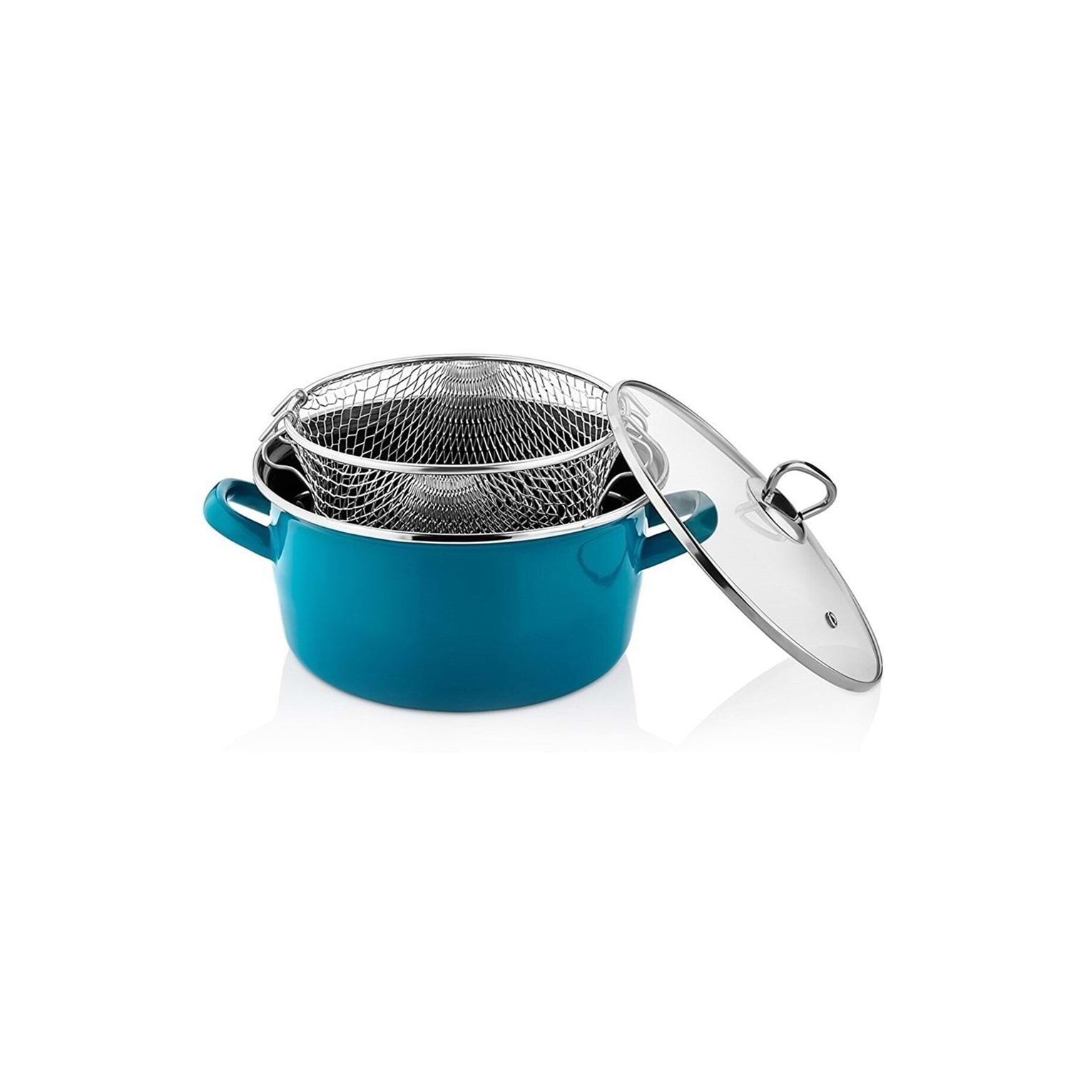 Emaye 22 cm Kızartma Tenceresi (Fritöz) Yeşil