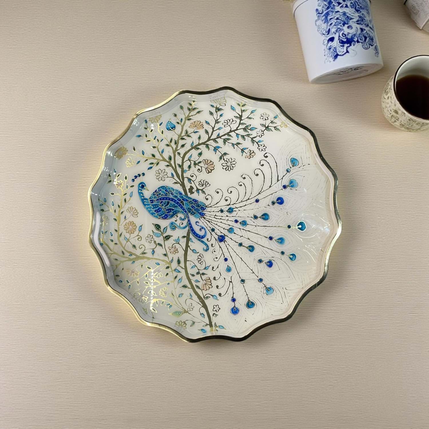 Özel Tasarım El Yapımı Ahşap , Cam Görünümlü Tepsi Tavuskuşu Yuvarlak