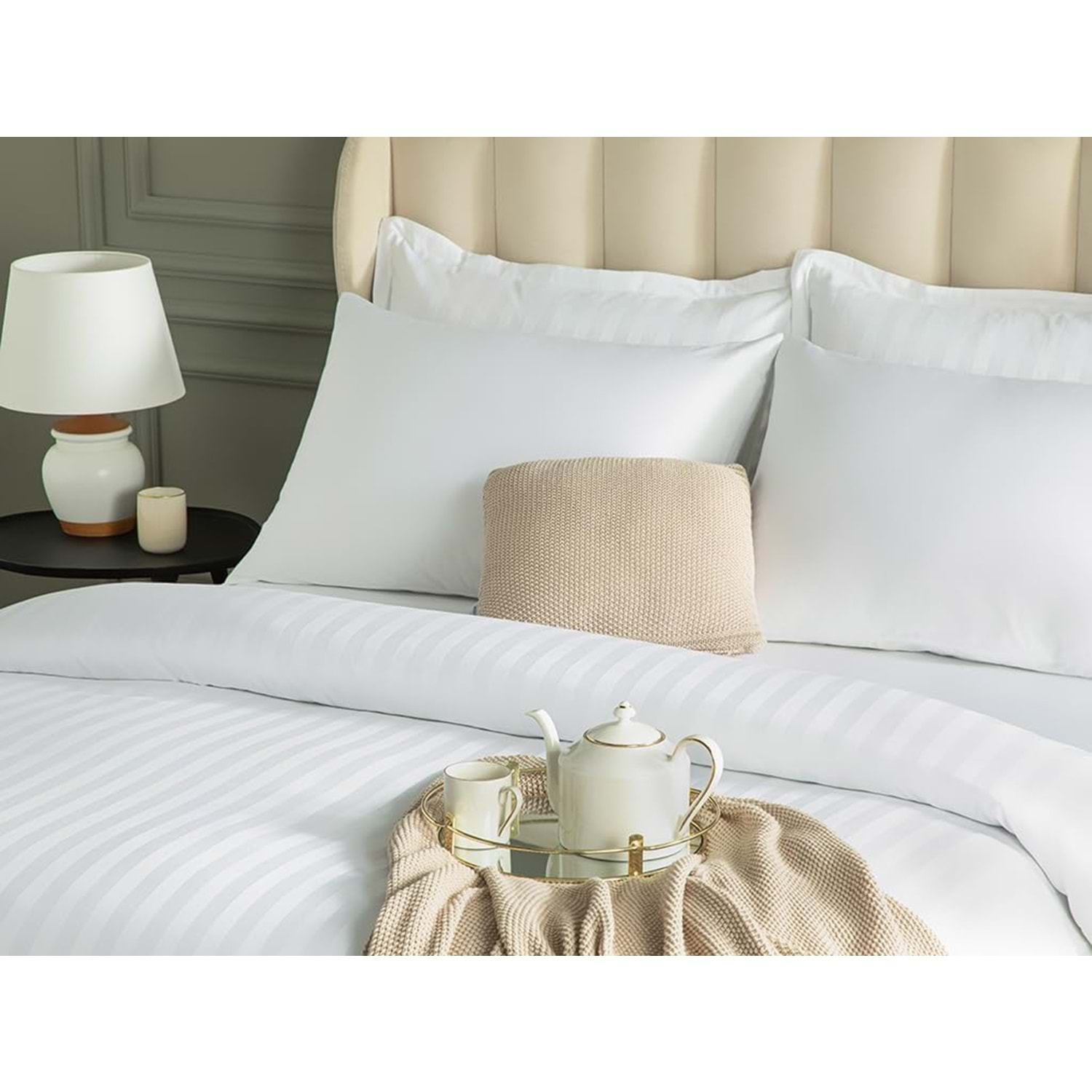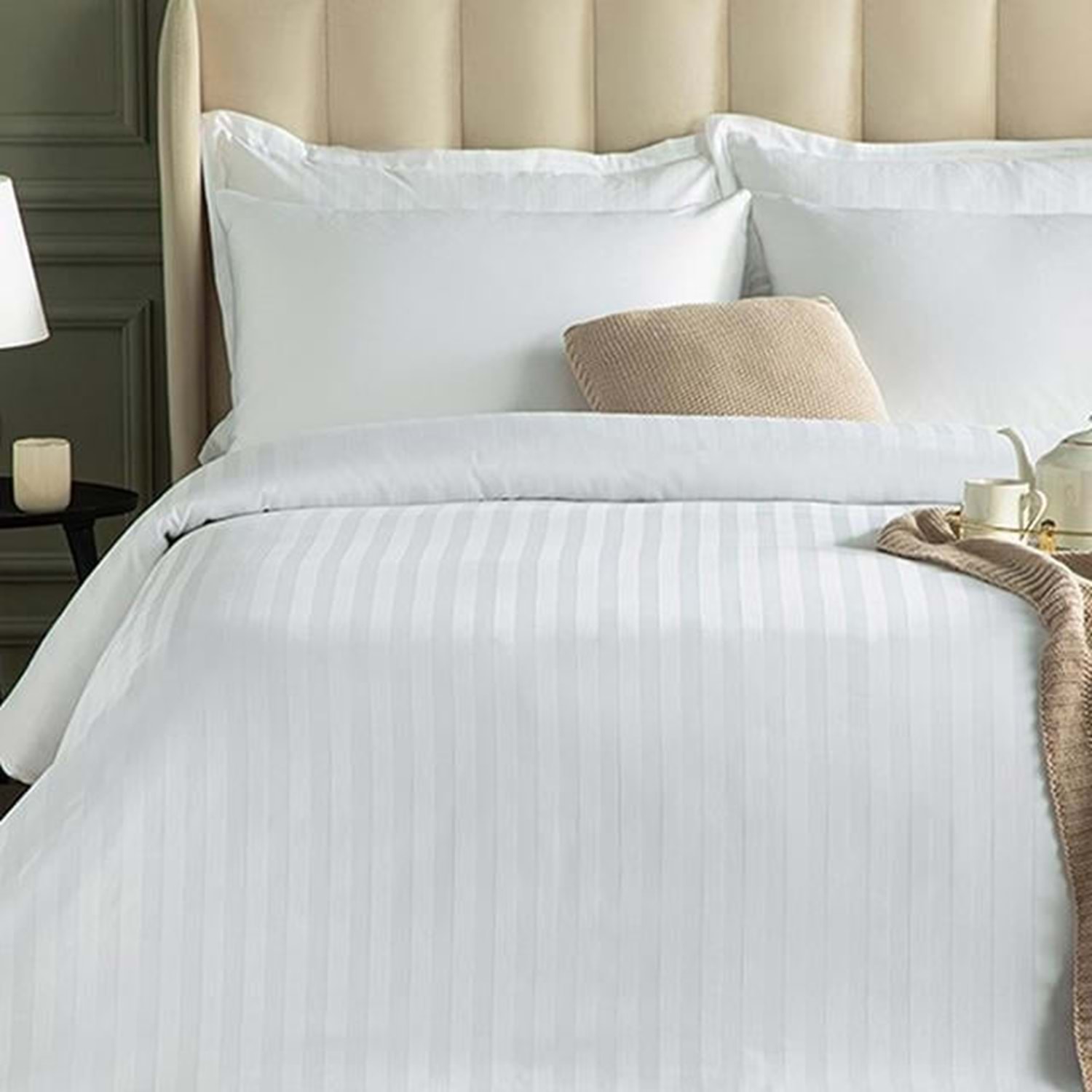 Nevresim Takımı Çizgili Saten Çift Kişilik Beyaz