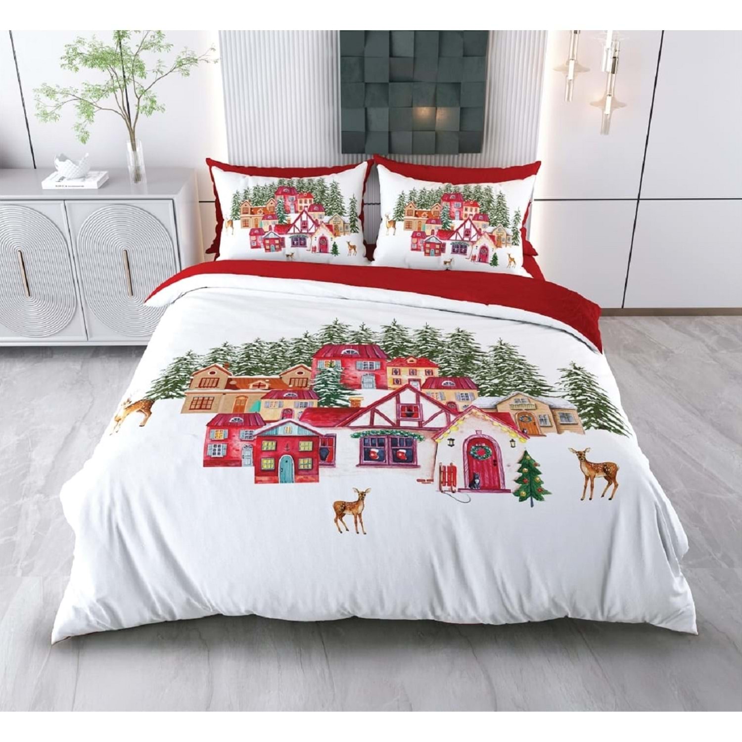 Yılbaşı Temalı 3D Baskılı Çift Kişilik Nevresim Takımı -Model 2080