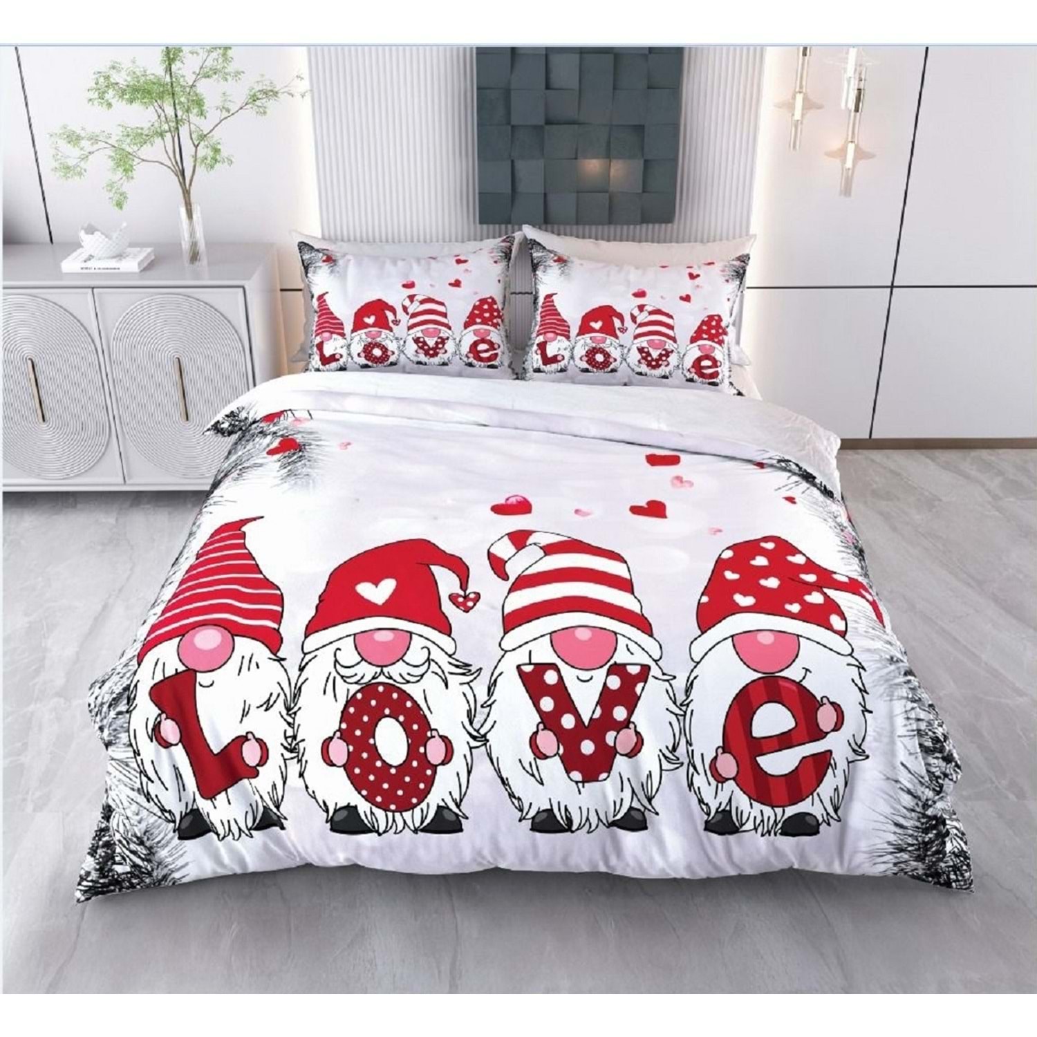 Yılbaşı Temalı 3D Baskılı Çift Kişilik Nevresim Takımı -Model 2087