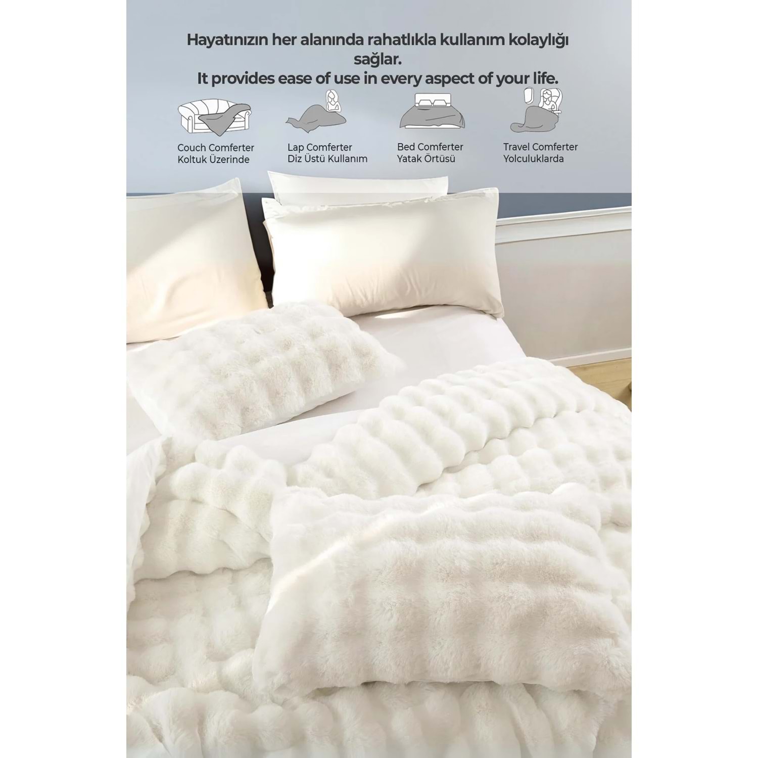 - Yumuşak dokusuyla konforlu bir uyku deneyimi sunan peluş materyalden üretilmiştir. - Çift kişilik yatak örtüsü seti, 220 x 240 cm boyutlarıyla geniş ve rahat bir kullanım alanı sağlar. - Elyaf dolgu materyal sayesinde hafif ve sıcak tutan bir yapıya sahiptir, soğuk kış günlerinde idealdir. - Düz deseniyle sade ve şık bir görünüm sunar, her yatak odası dekorasyonuna kolayca uyum sağlar. - Türkiye'de üretilmiştir, kalite ve güvenilirliği ile öne çıkar.